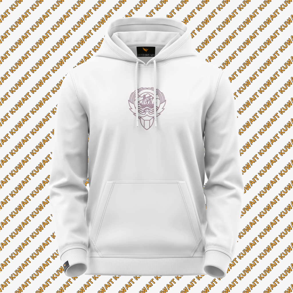 On the front, a light pink embroidered Kuwait logo adds a sleek and modern touch, making this hoodie perfect for any occasion.